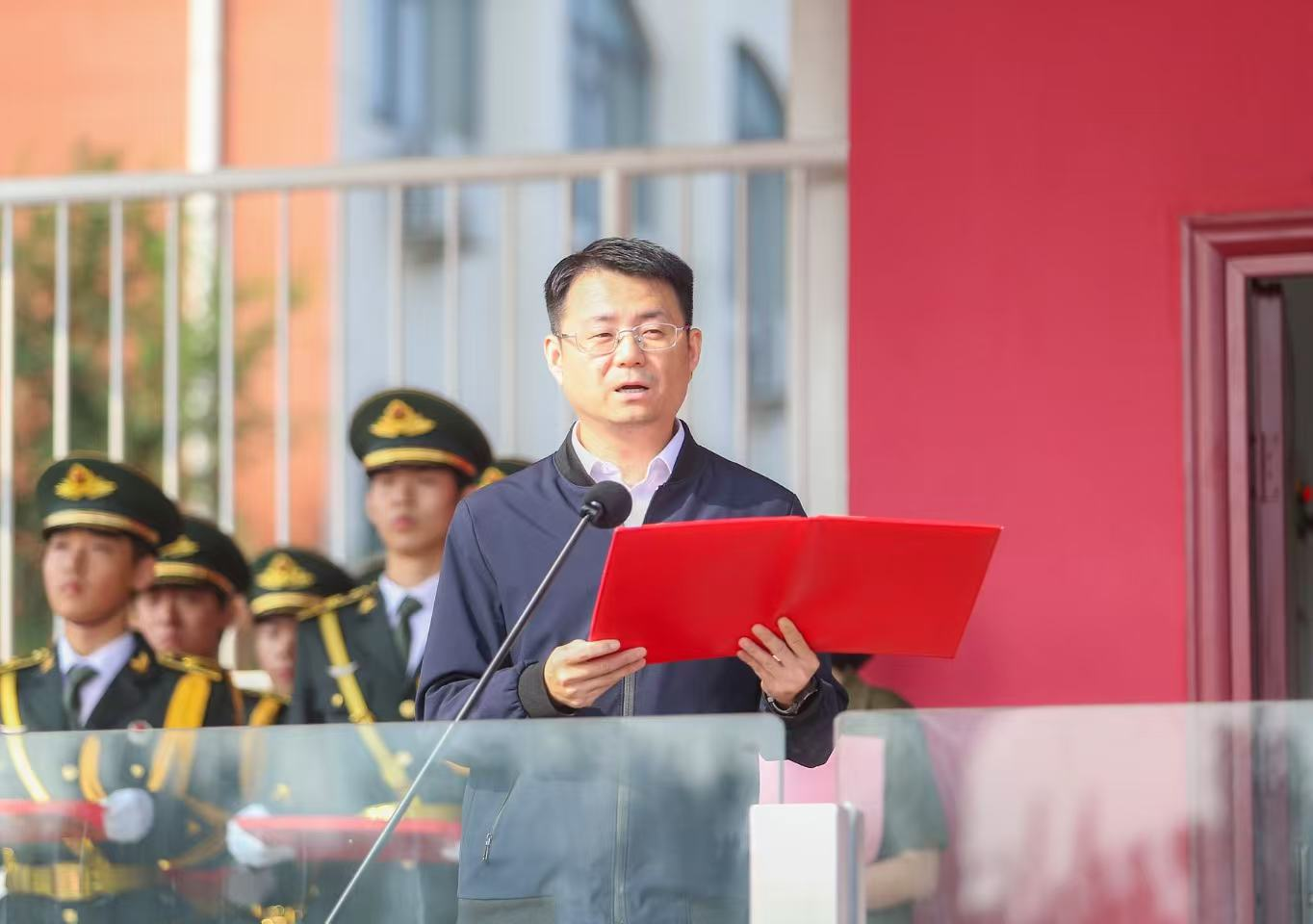 黨委宣傳部主要負(fù)責(zé)同志宣讀《關(guān)于表彰2025級學(xué)生軍訓(xùn)優(yōu)秀個人和先進(jìn)集體的決定》,主席臺領(lǐng)導(dǎo)為獲獎代表頒獎。