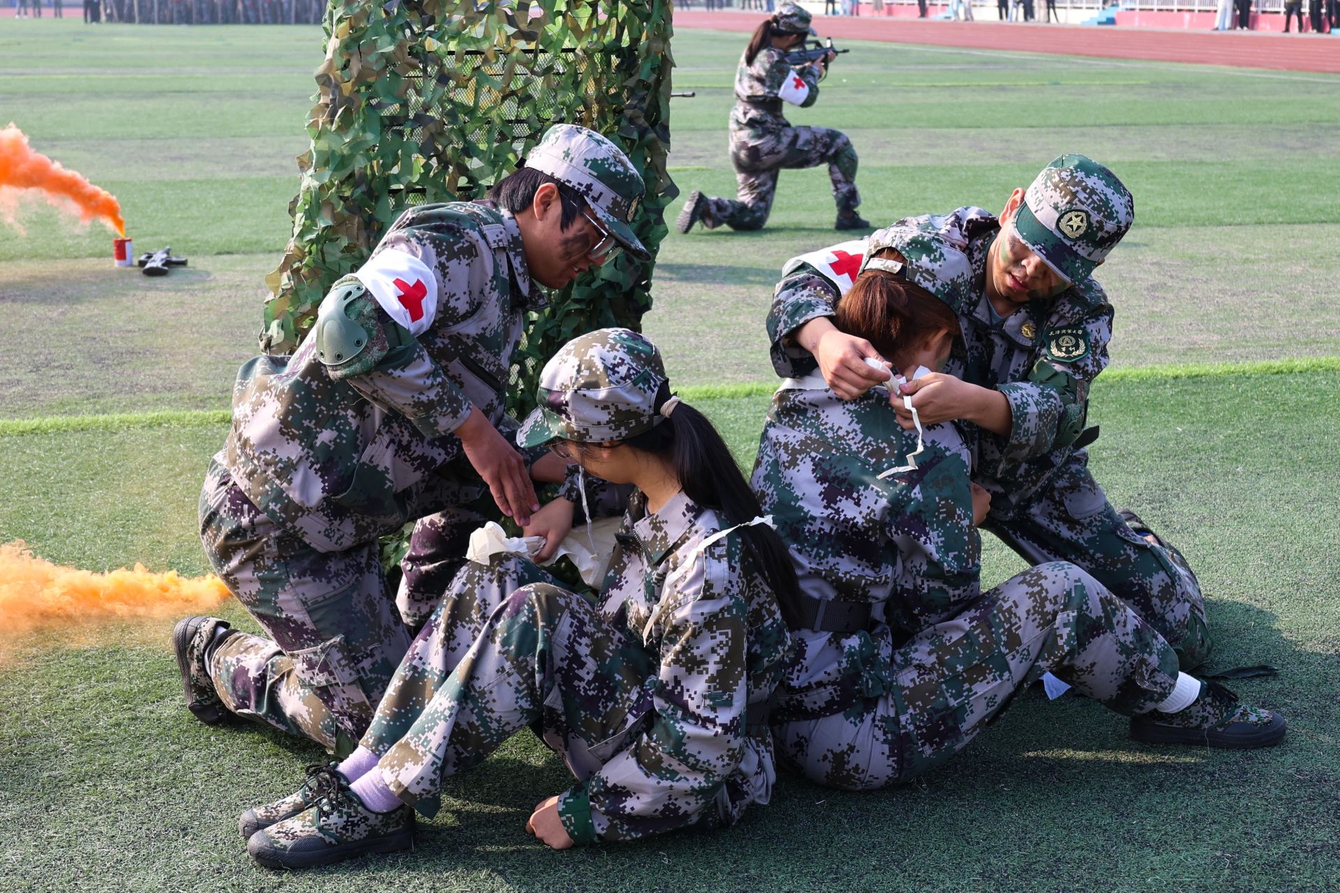 大會在莊嚴(yán)的升國旗儀式中拉開帷幕,全體人員高唱中華人民共和國國歌,五星紅旗冉冉升起。陳冠益下達(dá)指令后,軍訓(xùn)成果展示正式開始。由各學(xué)院組成的12支受閱分列式方隊(duì)邁著整齊的步伐、喊著鏗鏘的口號,昂首闊步依次走過主席臺,展現(xiàn)出2025級學(xué)子昂揚(yáng)向上的精神風(fēng)貌。分列式方陣之后,軍事科目成果依次展示,擒敵拳、匕首操、刺殺術(shù)、應(yīng)急棍術(shù)、戰(zhàn)術(shù)綜合演練等項(xiàng)目精彩紛呈。同學(xué)們動作整齊劃一、剛勁有力,每一個動作都凝聚著平日訓(xùn)練的汗水與努力,每一次配合都彰顯著集體的精神。