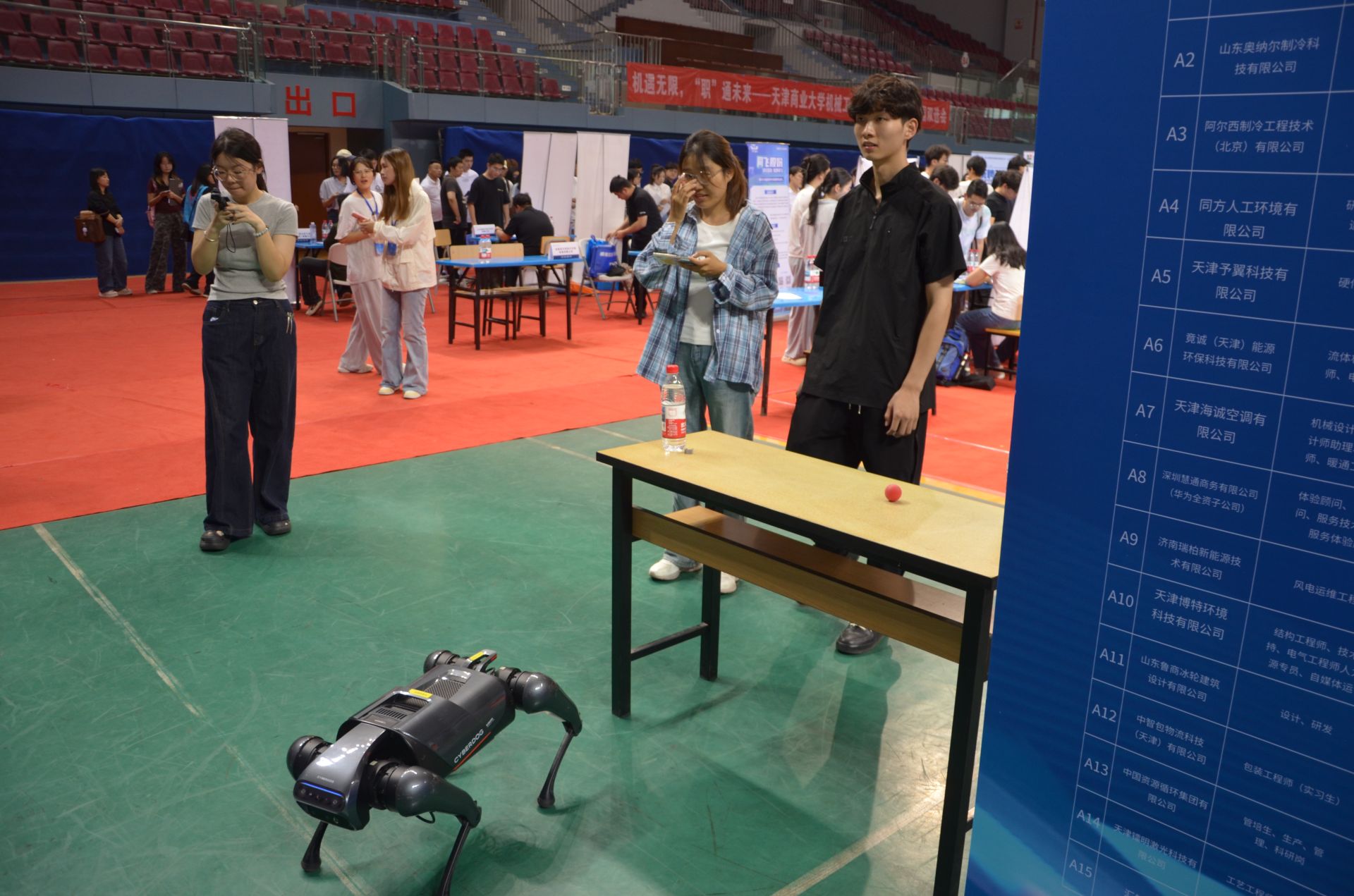 本次雙選會(huì)在黨委學(xué)工部的指導(dǎo)下,依托校院兩級(jí)聯(lián)動(dòng)機(jī)制,吸引了來自天津、北京、山東、上海、江蘇等10余個(gè)省市的百余家優(yōu)質(zhì)企業(yè)參會(huì),企業(yè)覆蓋學(xué)院全部專業(yè)涉及的行業(yè)領(lǐng)域,共提供就業(yè)崗位1000余個(gè),吸引1000余名學(xué)生到場參與,累計(jì)投遞簡歷3000余份。值得關(guān)注的是,機(jī)器狗與機(jī)器人亮相現(xiàn)場,成為亮眼的科技元素。招聘會(huì)現(xiàn)場還特別設(shè)置“個(gè)人風(fēng)采打卡區(qū)”“求職能量補(bǔ)給站”“邊疆人才星火計(jì)劃咨詢臺(tái)”“迷彩青春啟航營”等特色服務(wù)站,集成簡歷優(yōu)化、面試指導(dǎo)、征兵宣傳、后勤保障等一站式就業(yè)支持服務(wù),全方位滿足畢業(yè)生多元化求職需求。