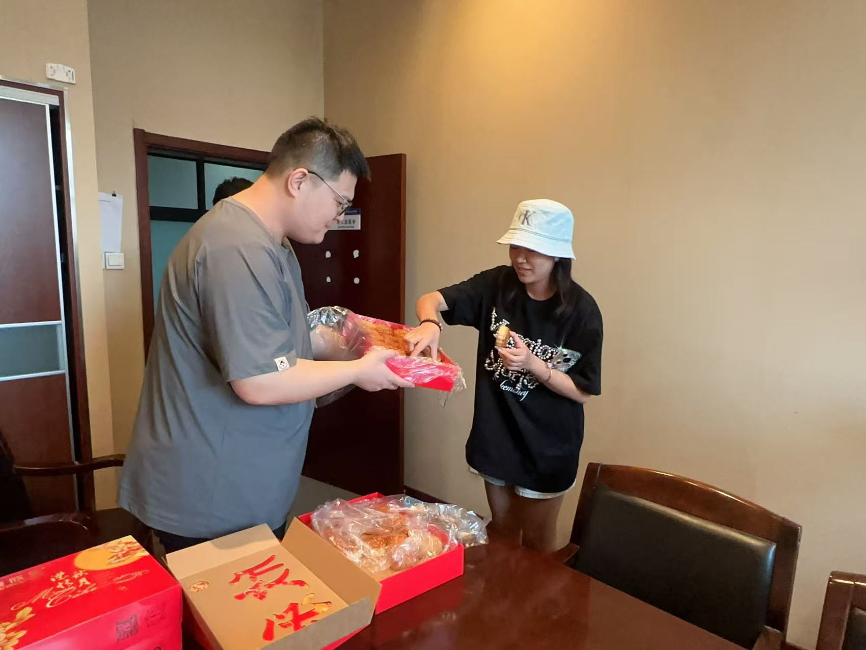 藝術學院、國際教育合作學院輔導員們化身“暖心使者”,將象征著美好祝福的月餅送到學生手中,與同學們親切交流并送上貼心的節日叮囑,讓同學們在校園里感受到家一般的溫暖。