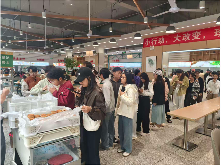 學校第二學生食堂精心策劃雙節“家宴”活動,以美食傳遞溫情、以心意守護團圓。食堂團隊結合師生飲食需求,制作南北各地特色風味,滿足不同地域師生口味偏好。活動現場,食堂工作人員與師生代表共同切開印有“喜迎國慶 月滿中秋”字樣的定制蛋糕,師生圍坐圓桌共享美味。食堂為每位就餐師生準備了“專屬中秋禮”——學校手工制作的特色月餅,月餅外皮印刻學校校訓、校標,既承載傳統中秋文化,又融入校園特色。下午的套圈游戲中,師生憑消費滿6元獲得的糧票參與活動,現場氣氛熱烈,歡呼聲此起彼伏。未使用的糧票可兌換兩元代金券,確保師生參與均有收獲。