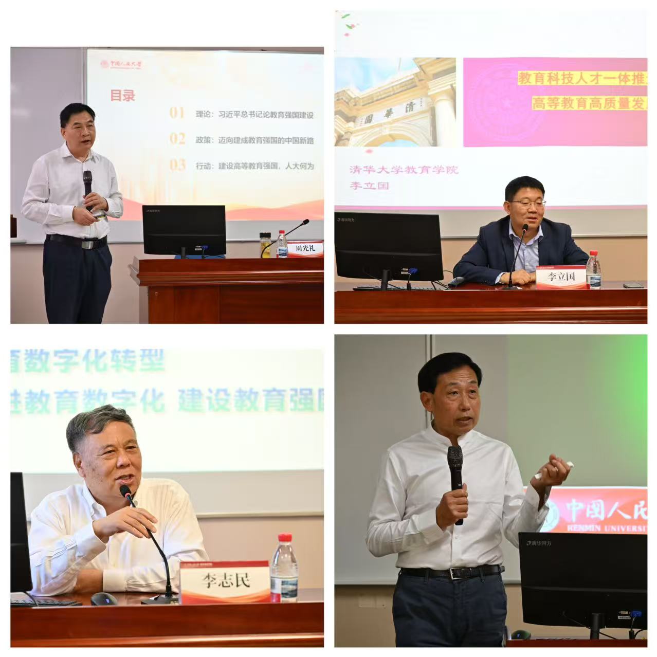 專題授課環節,邀請中國人民大學教育學院院長、評價研究中心主任、吳玉章講席教授周光禮作“教育強國規劃綱要解讀”主題講座;邀請清華大學教育學院教授、教育部-清華大學教育戰略決策與國家規劃研究中心主任李立國作“教育科技人才一體與高等教育高質量發展”主題講座;邀請中國教育發展戰略學會副會長兼人才發展專業委員會理事長,清華大學、國家教育行政學院兼職教授李志民作“人工智能與教育交融--AI時代高等教育教學的崛起與挑戰”主題講座;邀請國家高級心理咨詢師,北京大學、清華大學高級培訓課程特聘教授孫健升作“陽光心態與壓力管理”主題講座。