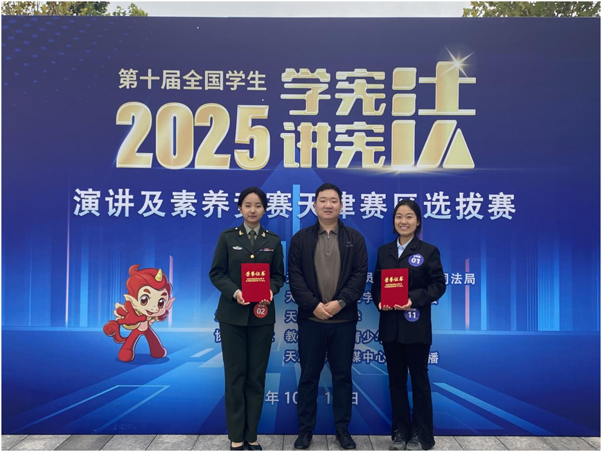 10月11日,天津市第九屆學(xué)生“學(xué)憲法 講憲法”比賽暨教育部第十屆全國學(xué)生“學(xué)憲法 講憲法”活動天津賽區(qū)選拔賽在天津理工大學(xué)舉辦。我校法學(xué)院法學(xué)2306班學(xué)生鄭言憑借優(yōu)秀的現(xiàn)場表現(xiàn)獲得素養(yǎng)競賽(高校組)一等獎、法學(xué)2404班學(xué)生張祎獲演講比賽(高校組)一等獎、法學(xué)2402班倪夢穎獲演講比賽(高校組)優(yōu)秀獎。