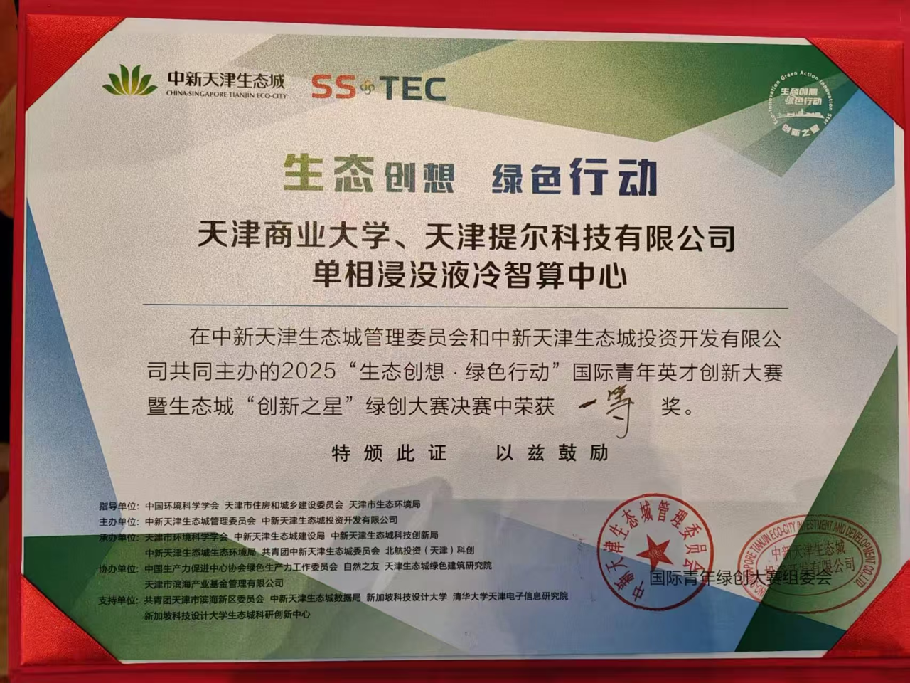 本次大賽由中新天津生態(tài)城管理委員會(huì)(生態(tài)城管委會(huì))和中新天津生態(tài)城投資開(kāi)發(fā)有限公司(生態(tài)城合資公司)聯(lián)合主辦,深入貫徹落實(shí)“創(chuàng)新驅(qū)動(dòng)發(fā)展”戰(zhàn)略,聚焦“雙碳”目標(biāo),吸引了來(lái)自國(guó)內(nèi)外眾多優(yōu)質(zhì)創(chuàng)新項(xiàng)目參與角逐。李雪強(qiáng)團(tuán)隊(duì)深耕數(shù)據(jù)中心綠色冷卻技術(shù)領(lǐng)域,依托天津提爾科技有限公司研發(fā)的“單相浸沒(méi)液冷智算中心”項(xiàng)目,以先進(jìn)技術(shù)為核心,致力于推動(dòng)數(shù)據(jù)中心能源消耗降低與冷卻技術(shù)迭代升級(jí)。