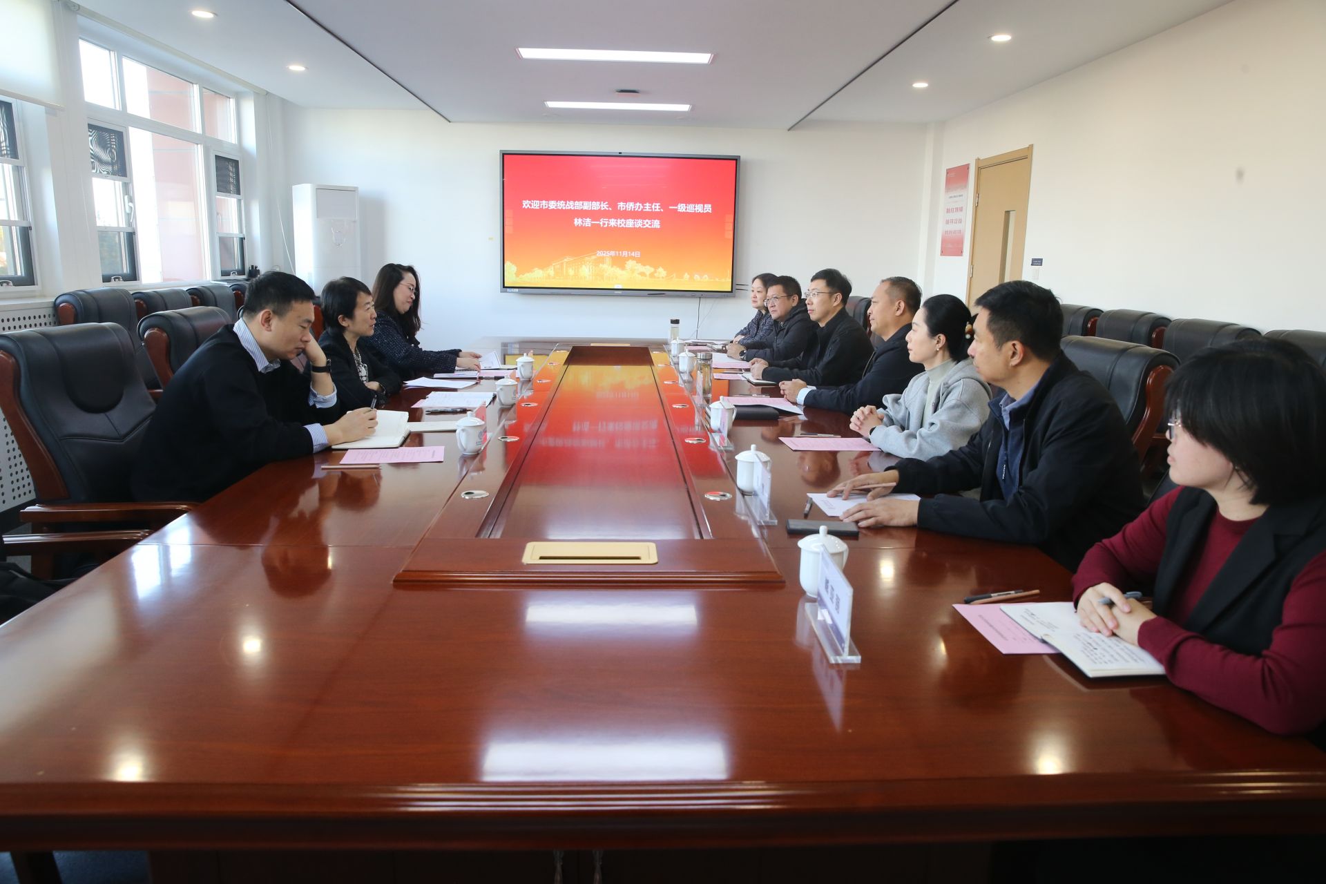 11月14日上午,市委統戰部副部長、市僑辦主任、一級巡視員林潔一行來我校走訪調研。會前,校黨委書記張亞會見了林潔一行。黨委統戰部、體育教學部、信息工程學院相關負責同志及教師代表參加座談。